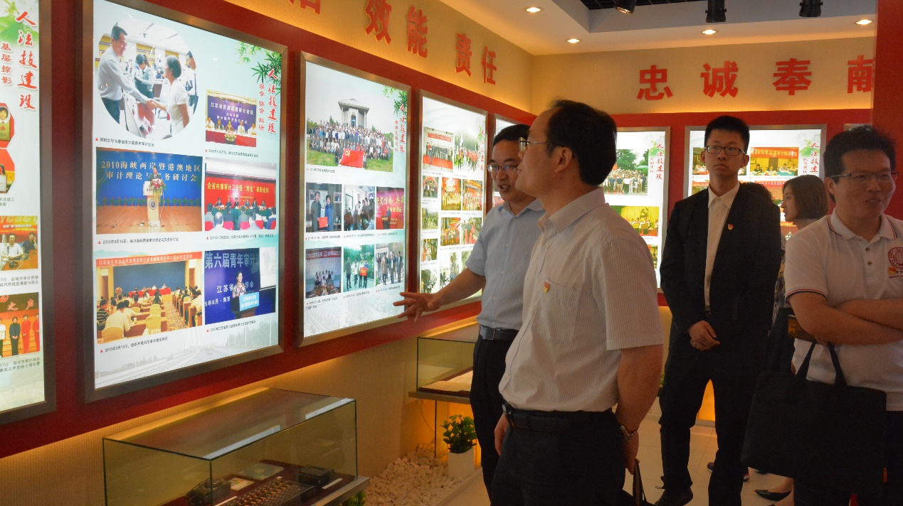 随后,在王达源副书记带领下,全体人员参观了江苏省审计厅陈列馆,学习了解江苏审计事业与发展、人法技建设、重大审计项目、江苏审计荣誉墙等。