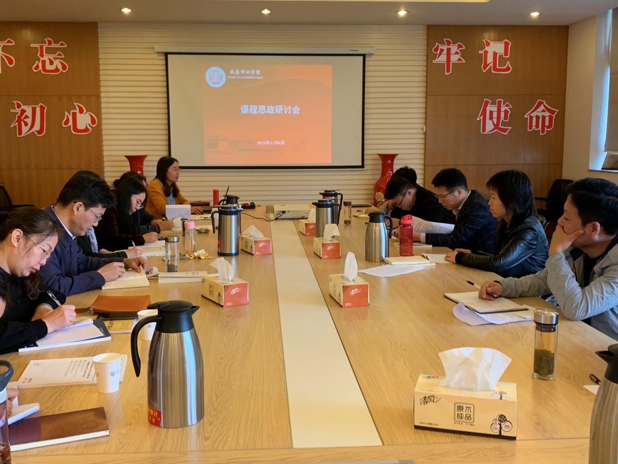 11月6日下午,政府审计学院课程思政研讨会在敏行楼四楼会议室召开。各专业课程组组长和部分教师参加了此次研讨会。会议由李曼副院长主持。
