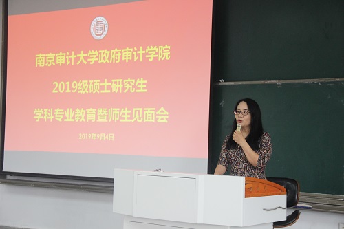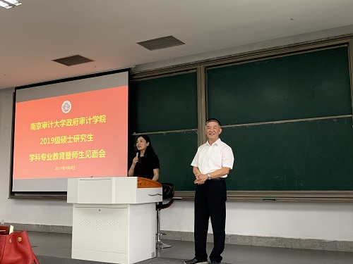 政府审计学院2019级硕士研究生学科专业教育暨师生见面会,周维陪院长,陈祖华书记,杨国为院长等领导出席,会议由王士红副院长主持。