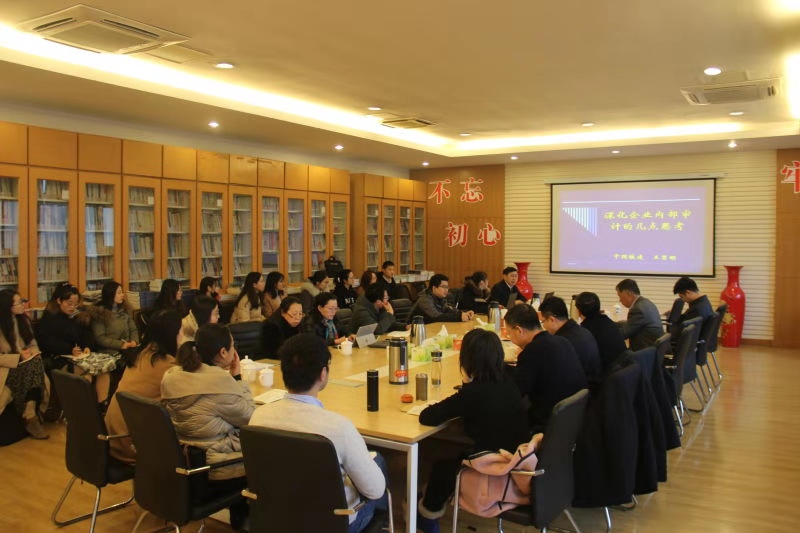 王秀明简单介绍了中国铁道建筑集团的发展历程以及为国家建设和发展做出的重要贡献并总结了中铁建内部审计的发展概况,提及的总审计师制度建设情况引起了与会者的广泛讨论。王秀明提出的对目前企业内审发展的四点思考:“准确把握内审与政府审计的关系”“建立健全内审的机制体制制度”“积极统筹全系统内审资源整合”和“全面提高内审质量与水平”体现了一名富有经验的老审计员、治理层人员对当前审计工作的深刻思考。整场讲座深入浅出、观点务实,启发了与会者的思考,在提问环节许多教师积极提问,王秀明热情探讨,强调“审计信息化”对未来审计发展的推动作用。