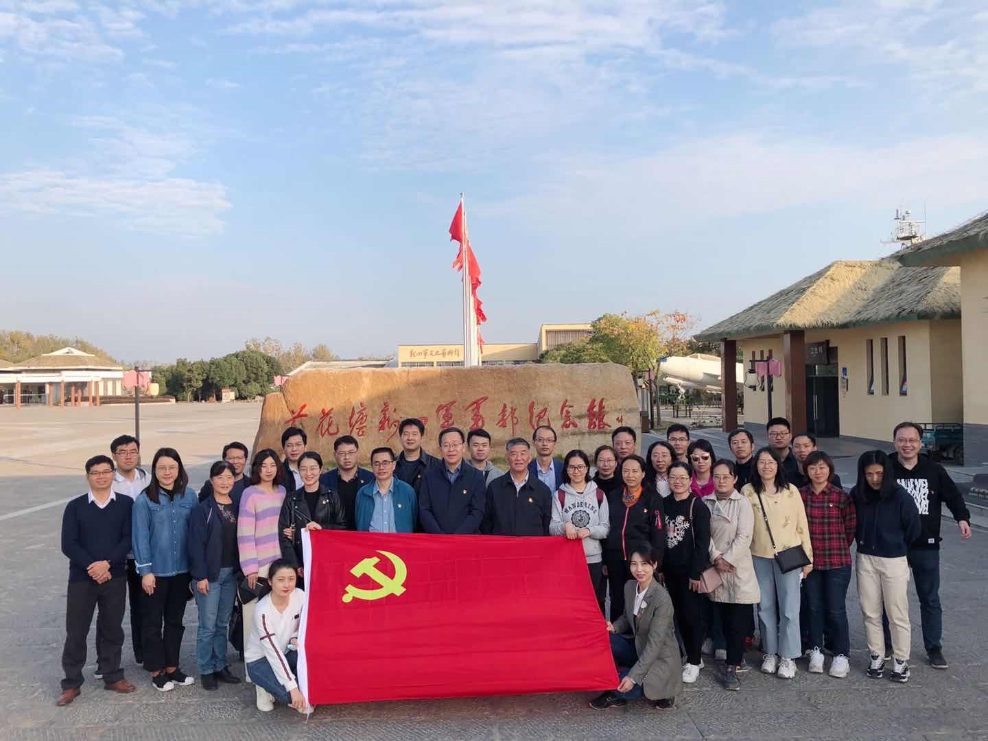 本次党日活动是党总支“追寻红色足迹”系列活动之一。四个研究生支部已经完成了学习“四史”,探寻南京红色遗迹,绘制南京红色地图,讲述南京红色故事,传承南京红色文化的任务。本次盱眙黄花塘之旅,将是教工支部探寻红色足迹的开始。黄花塘原来只是一个默默无闻的小村庄,但它在波澜壮阔的中国革命史上写下了辉煌的篇章。从1943年1月初到1945年2月底,在全国抗日战争由相持阶段转入反攻的关键阶段,新四军军部移驻黄花塘。在此期间,军部在艰苦卓绝的条件下,运筹帷幄,指挥抗日,粉碎了日伪军的“扫荡、清乡”和国民党顽固派的摩擦、进攻,在苏、皖、浙、鄂、豫五省开辟了八个敌后抗日根据地,在日军统治的心脏地区插上了一把尖刀,使华中地区成为对敌斗争的主战场。