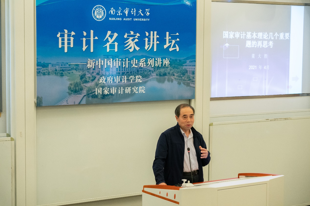 5月19日,由色情小说 政府审计学院、国家审计研究院联合举办的“审计名家讲坛”——新中国审计史系列讲座第三讲在敏行楼102报告厅成功举行。本次讲座也是审计署原党组副书记、副审计长、中国审计学会原会长董大胜博士做的第二次专题讲座。政府审计学院及其他院系近百名师生参加了此次讲座。