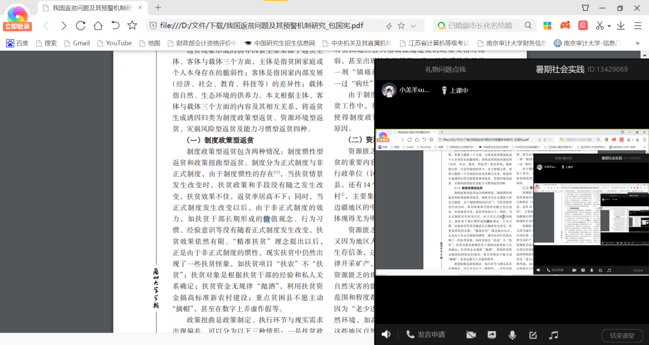 政府审计学院贵州黔西南州“社会保险+商业保险”双规模式防控返贫项目队响应了党的十八大以来脱贫攻坚在治国理政的突出地位的号召,意识到部分乡村可能存在返贫风险,决定在暑假期间进行“双保+审计”防返贫研究。脱贫攻坚战取得了全面胜利,但“后脱贫时代”隐藏着巨大返贫风险,尤其在乡村表现的更为明显。基于这样一种社会问题,团队搜集资料,以贵州黔西南州乡村为例探究“社会保险+商业保险”双轨模式与审计助力防控返贫的问题与对策。