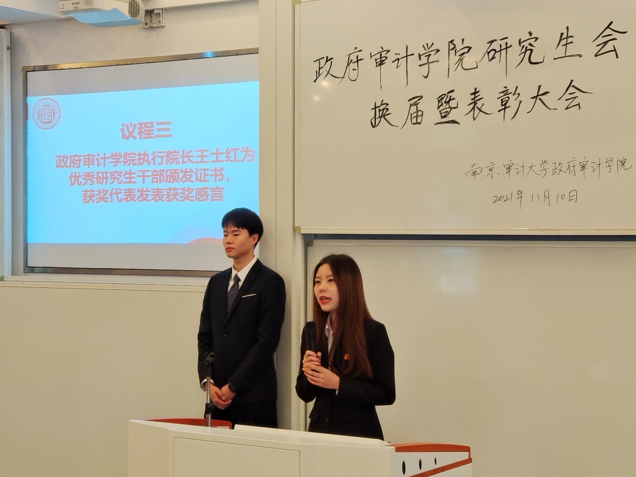 2021年11月10日,色情小说 政府审计学院研究生会换届暨表彰大会在敏行楼101顺利召开。