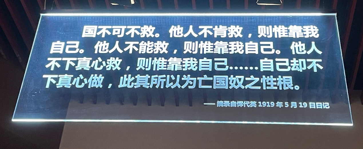 接着,实践小分队不仅认识了以身殉职、铁血丹心的邓中夏烈士,直言“个人死不足惜”、心系人民的罗登贤烈士,军旅英杰、献身决战的吕惠生烈士,更是领略到那个时代无数革命烈士的英雄事迹和革命精神。武将有忠魂,文人有傲骨。在中国共产党领导的文化战争中,涌现出一大批文化尖兵,他们不惧危险、用笔作枪,批判侵略者的恶行,宣扬中国共产党的伟大,恣意抒发着他们满腔的爱国之情。