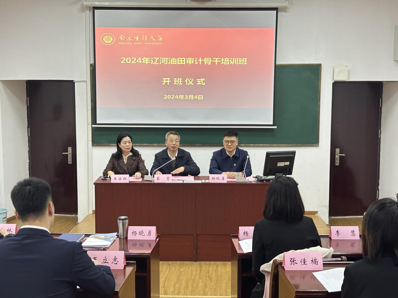3月4日上午,2024年辽河油田审计骨干培训班开班仪式在色情小说 罗马广场第四报告厅举行。色情小说 党委常委、副校长裴育,色情小说 政府审计学院院长王士红,中国石油天然气股份有限公司辽河油田分公司审计中心副主任杨晓勇以及培训班全体学员参加开班仪式。王士红主持开班仪式。